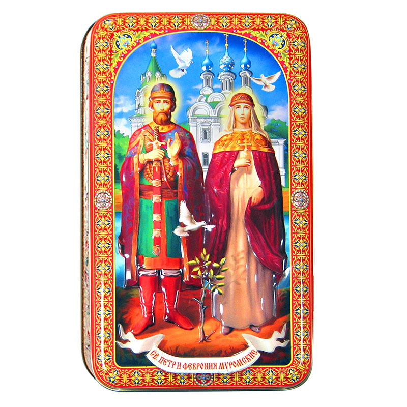 Шкатулка подарочная 60 г Петр и Феврония (цейлонский черный чай) ж/б
