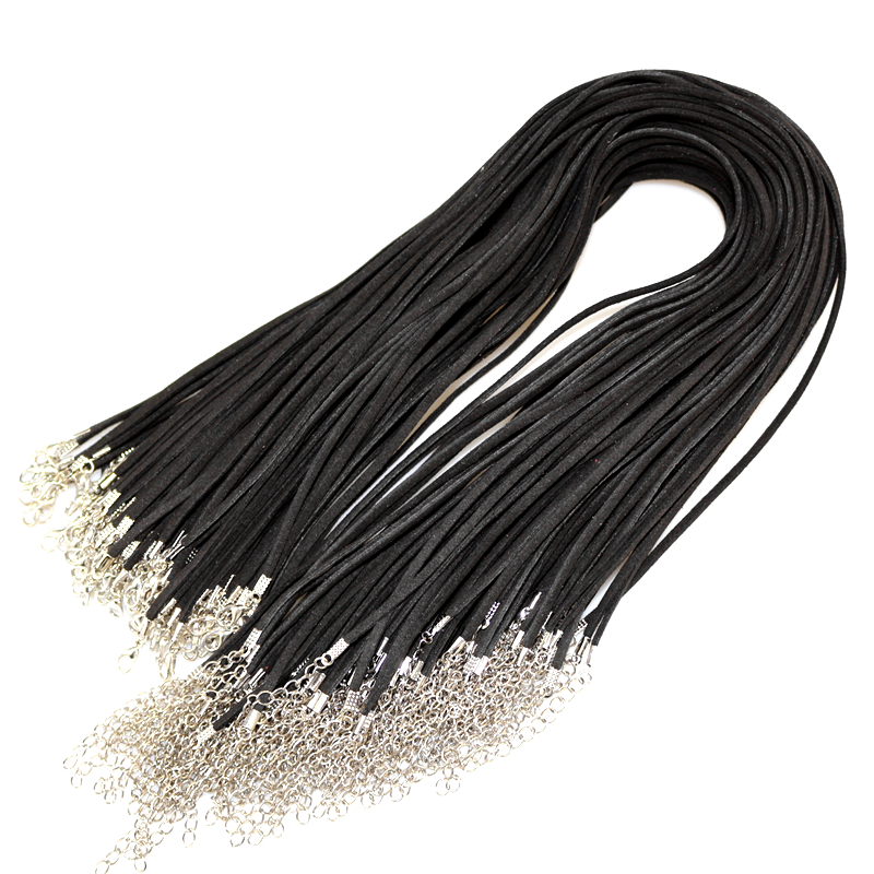 Шнур для ювелирных изделий (экокожа, черный 2 мм, замок "серебро") 45 см