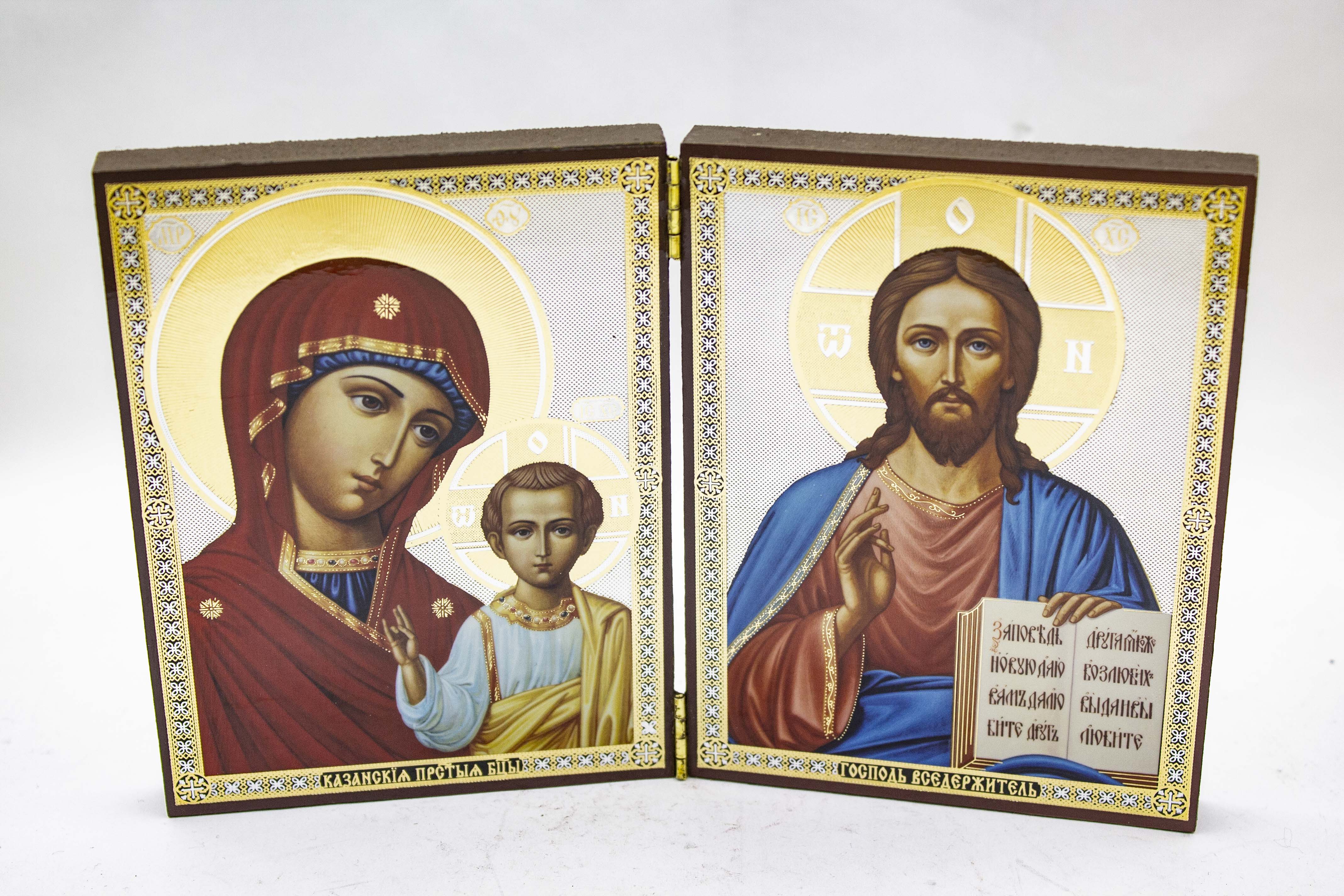 Складень деревянный двойной большой поясной Казанская Б.М-Господь Вседержитель (73-77) (180*116) 003