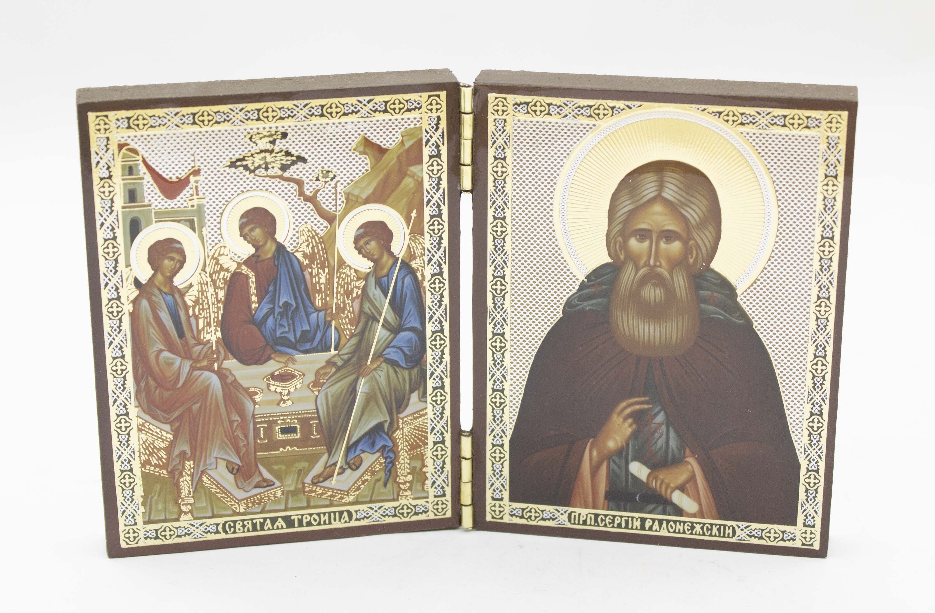 Складень деревянный двойной средний Сергий Радонежский св. прп.-Святая Троица (125*72) 002