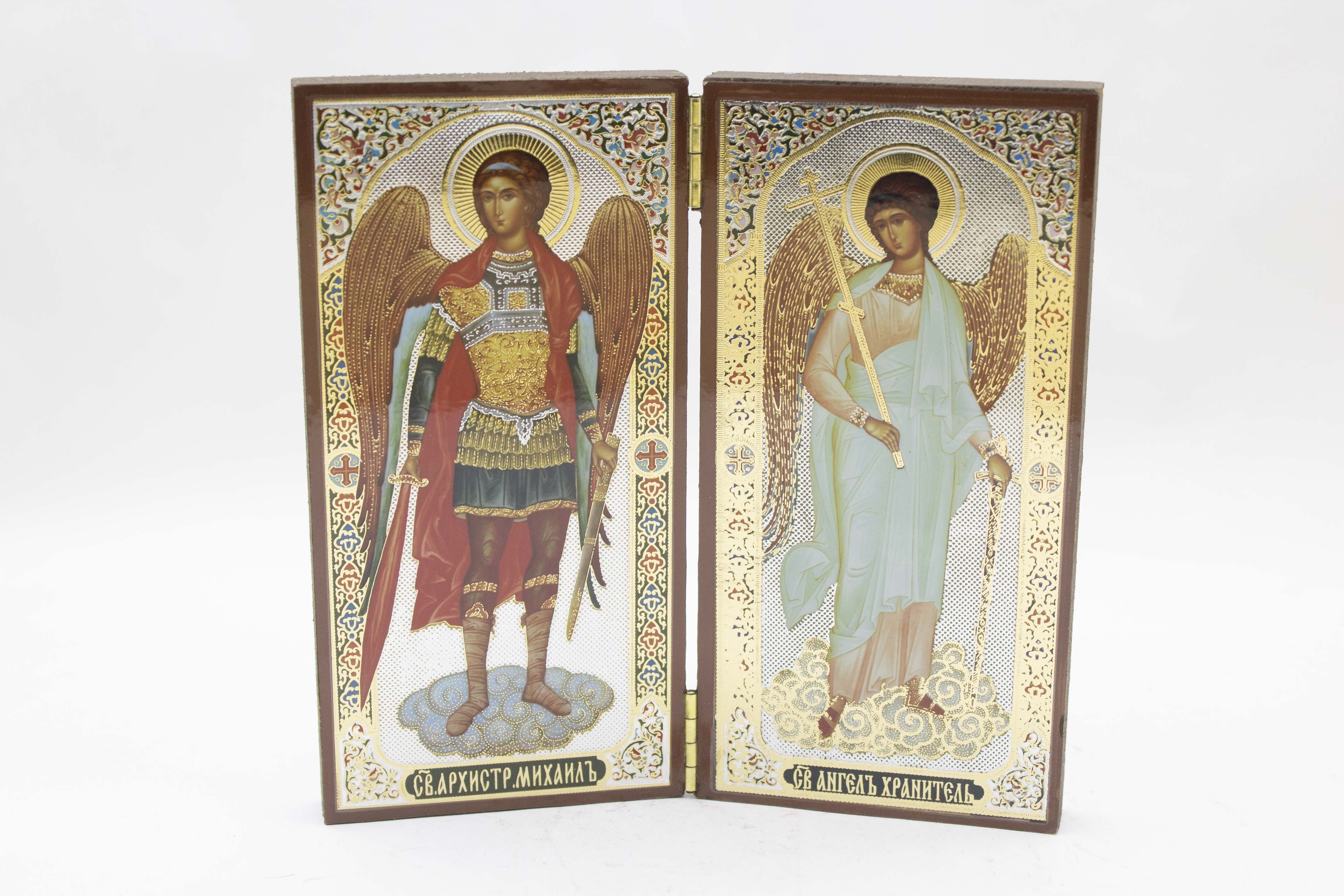 Складень деревянный двойной в рост Михаил Архангел-Ангел Хранитель (125*124) 017