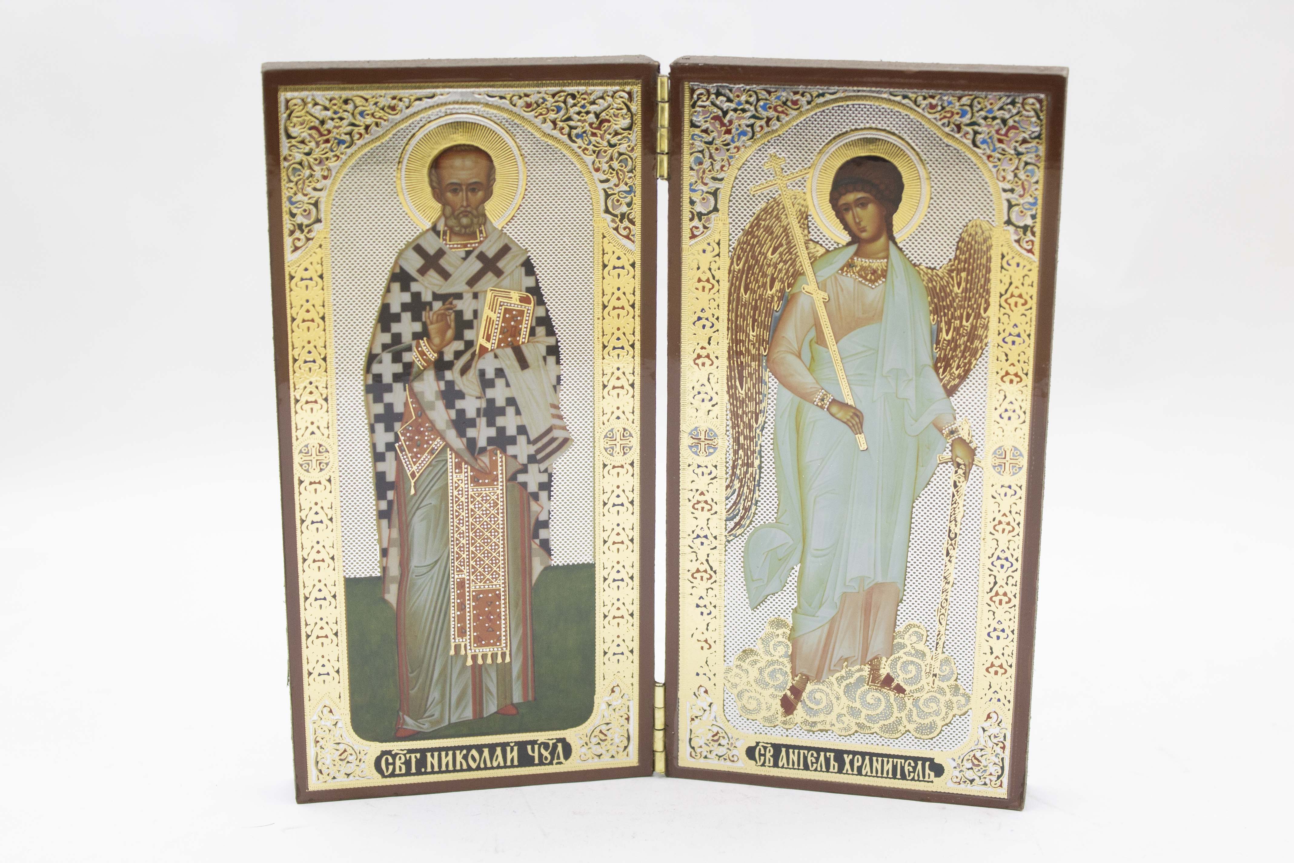 Складень деревянный двойной в рост Николай свт. чуд. - Ангел Хранитель (125*124) 010