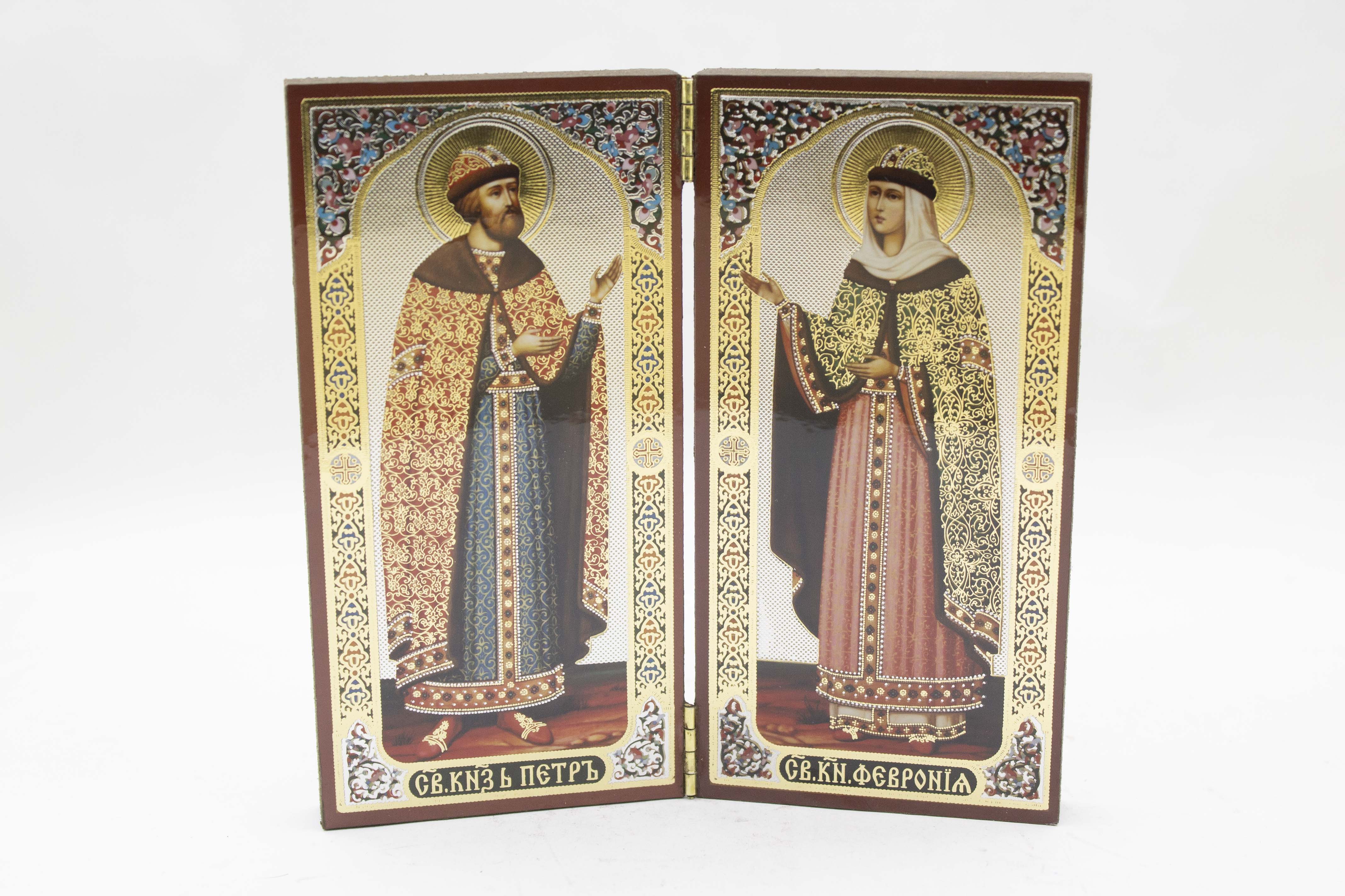 Складень деревянный двойной в рост Петр св.блгв.кн. - Феврония св.блгв.кн. (125*124) 021