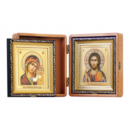 Складень деревянный Казанская БМ и Господь Вседержитель (180*200 мм), багетная рамка