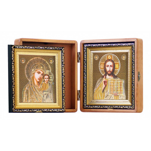 Складень деревянный Казанская БМ и Господь Вседержитель (180*200 мм), голография