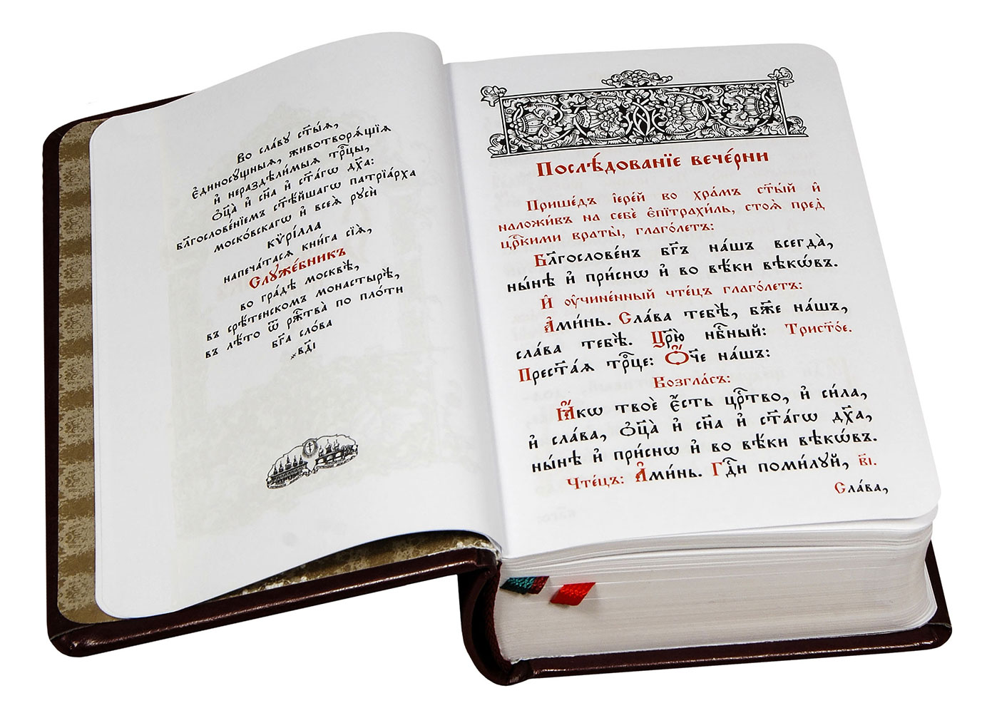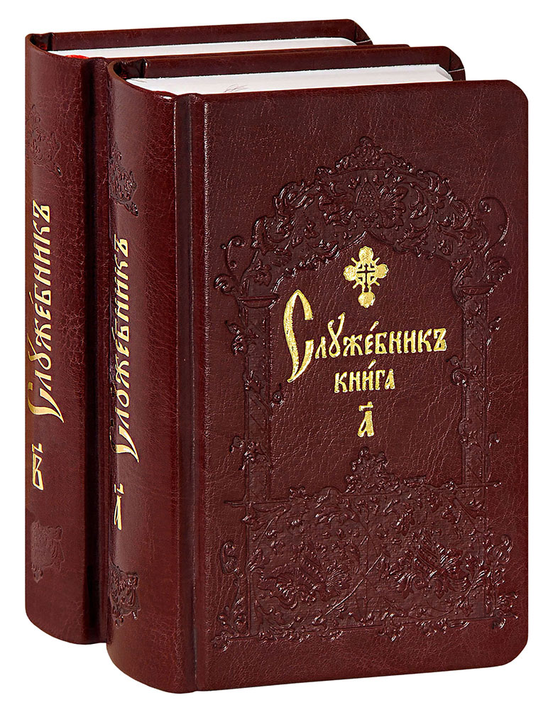 Служебник в кожаном переплёте в 2 томах. Подарочное издание малого формата. С тремя лентами-закладка