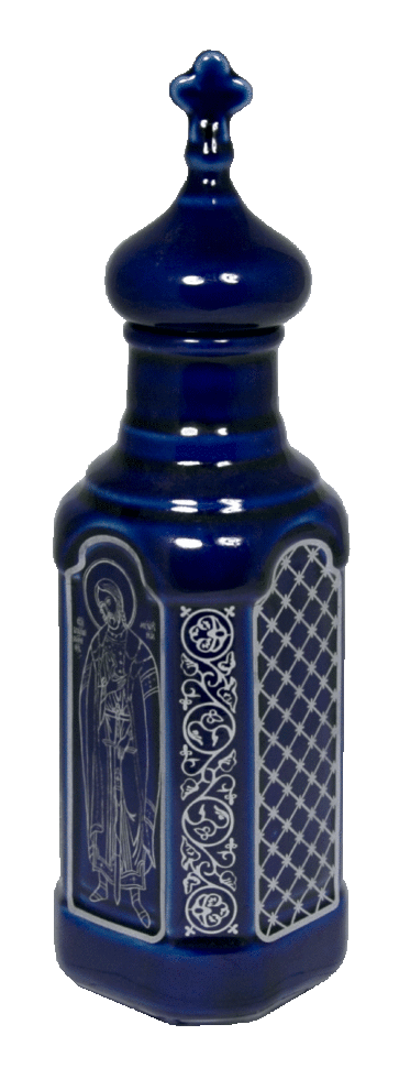 Сосуд "Святая вода" большой граненый (кобальт, икона Ал. Невский+ орнамент серебро) 8223