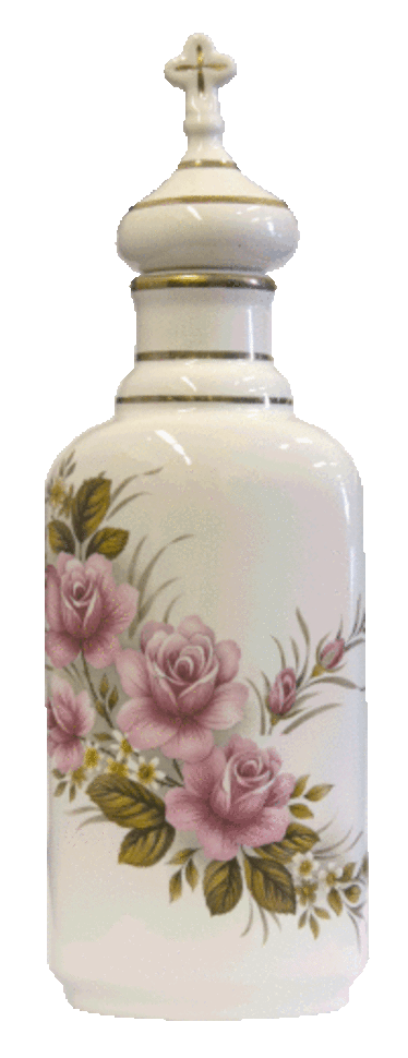 Сосуд "Святая вода" плоский (бел., розовые розы, отводка золотом) 7966