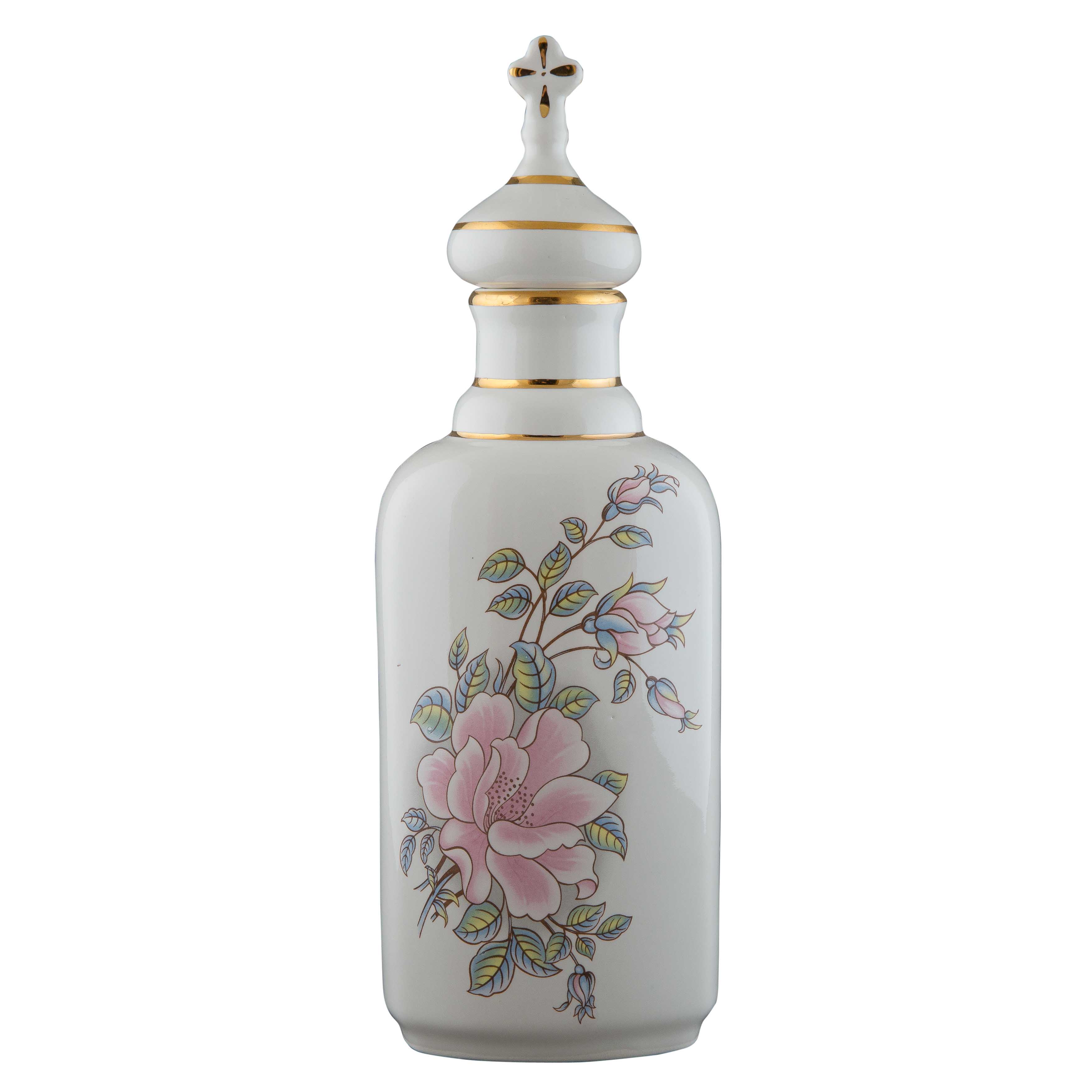Сосуд "Святая вода" плоский (бел., шиповник, отводка золотом) 9469