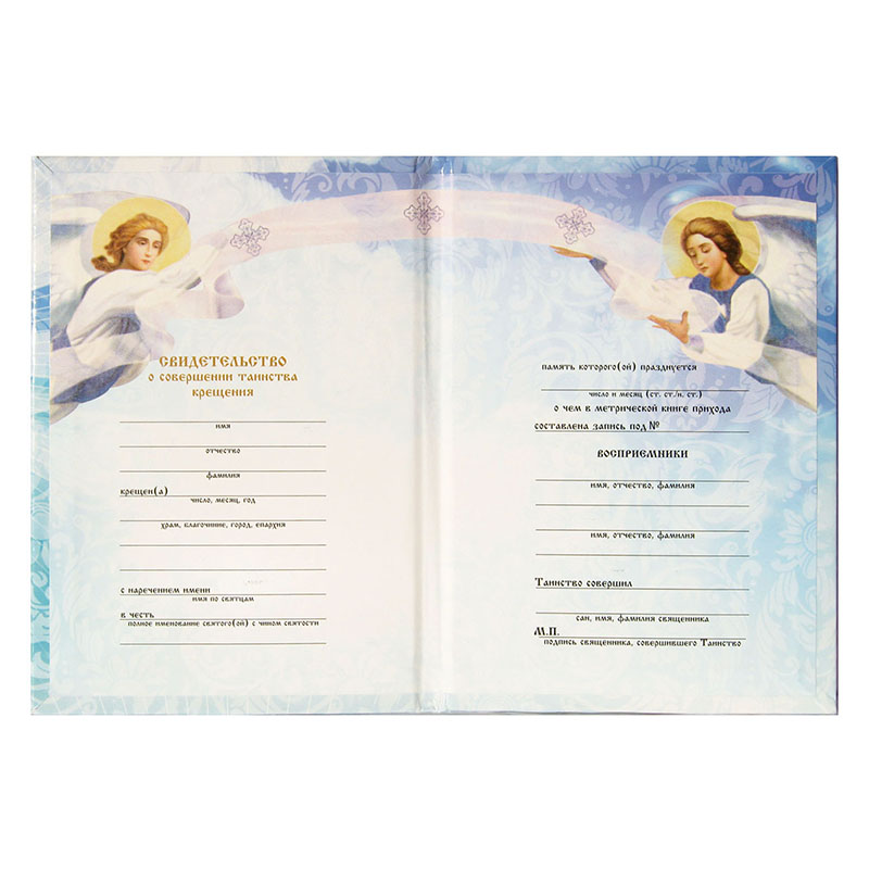 Св-во о совершении таинства крещения голубое полноцвет (тв. переплет)