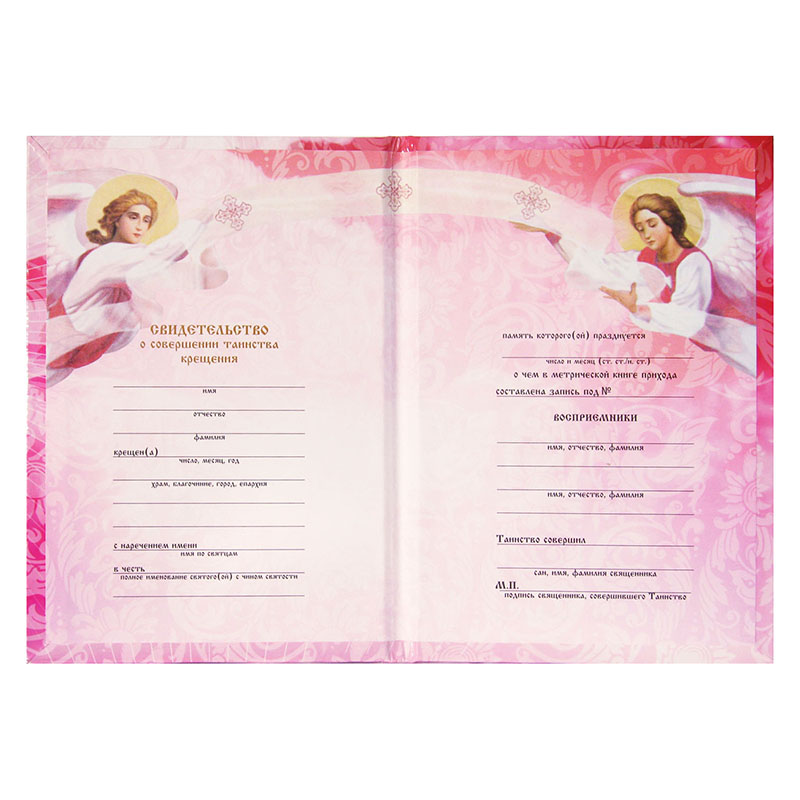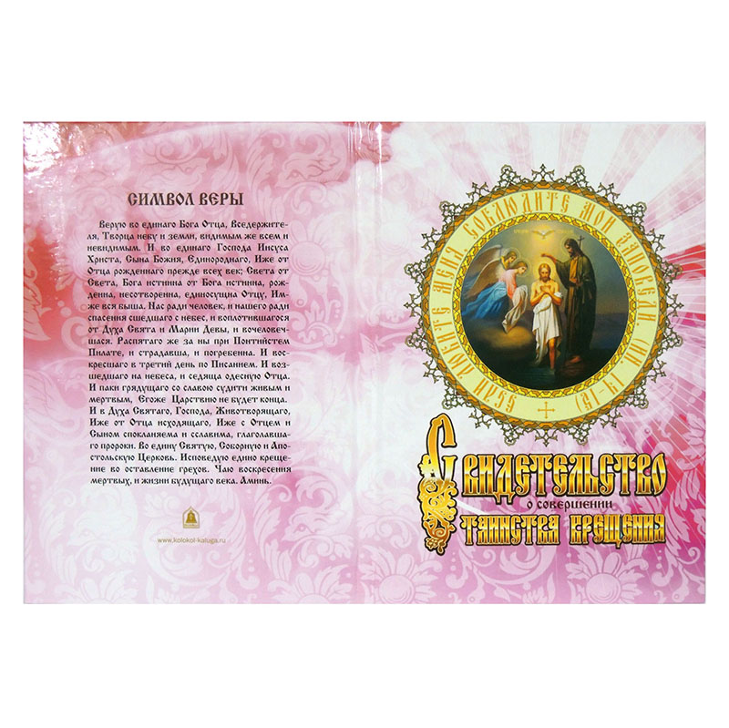 Св-во о совершении таинства крещения розовое полноцвет (тв. переплет)