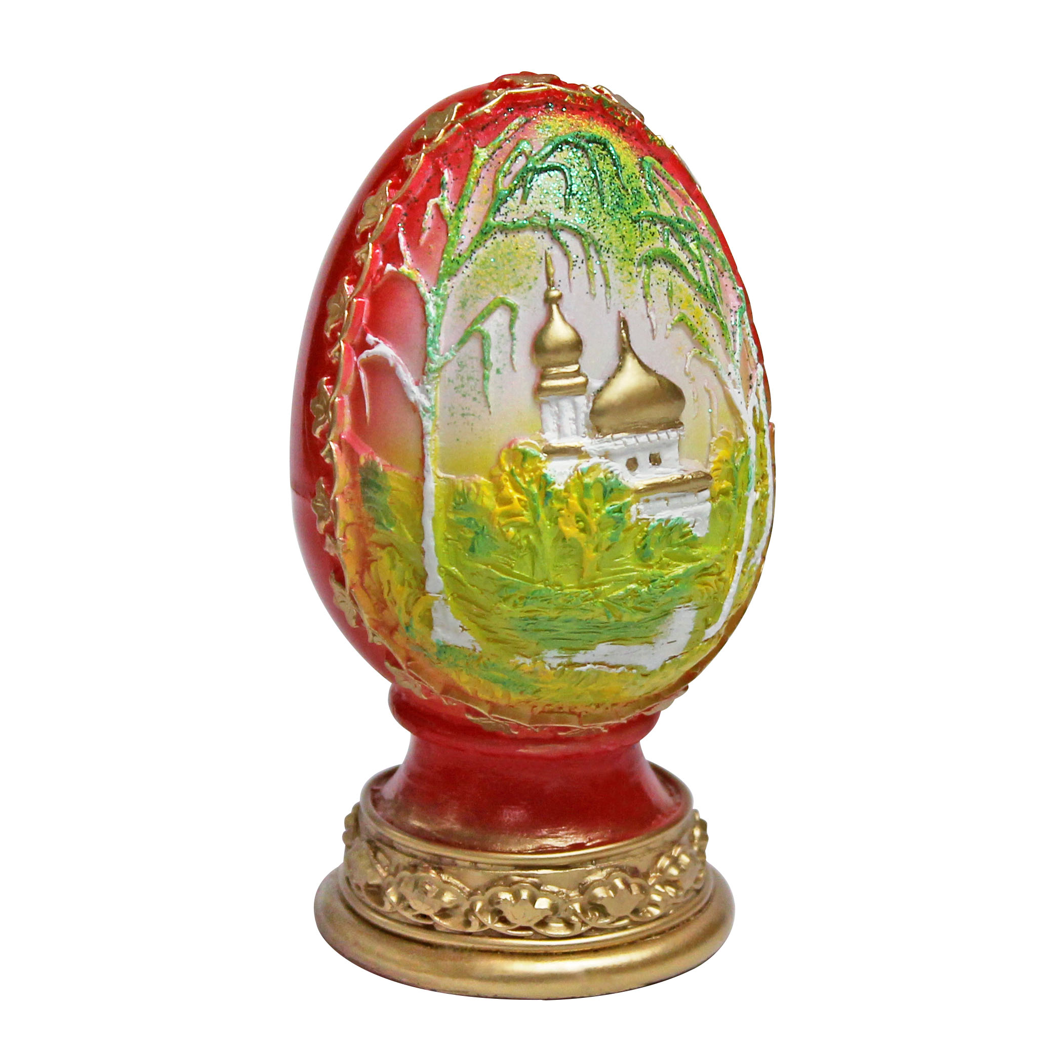 Свеча Пасхальное яйцо с березами красное