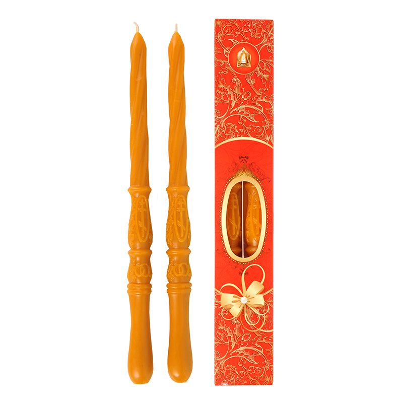 Венчальные свечи обычно содержат рядом с иконами. При хранении в открытом виде изделия загрязняются и покрываются пылью. Их лучше поместить в бумажную, полиэтиленовую или тканевую обертку. Свечи расфасованы в пачки попарно. В большой коробке находится 60 таких упаковок.