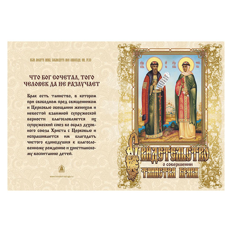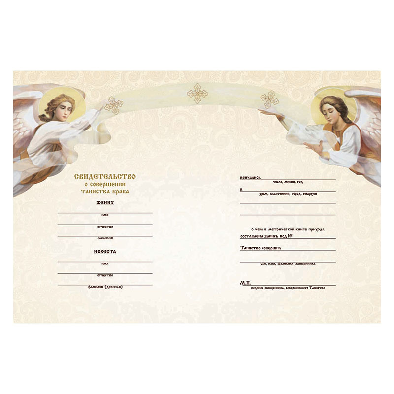 Свидетельство о совершении таинства брака (100шт.в упаковке, 500шт. в коробке)