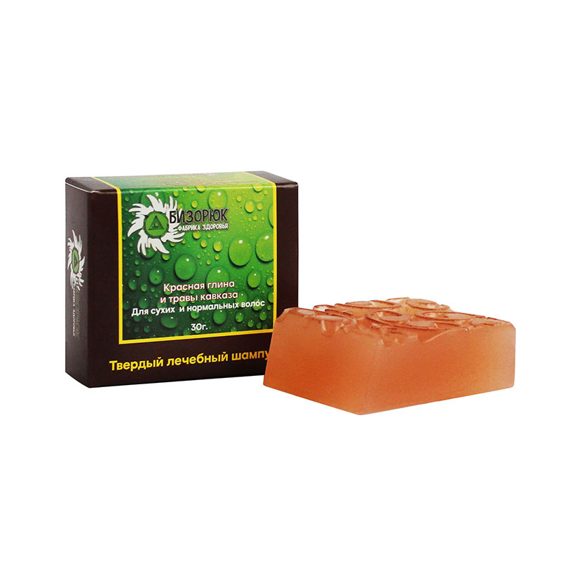 Твердый лечебный шампунь. Красная глина + травы Кавказа 30 гр.