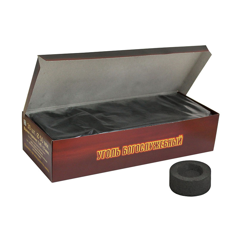 Уголь Богослужебный d=50мм (30 таблеток в упаковке, в коробке - 12 упаковок)