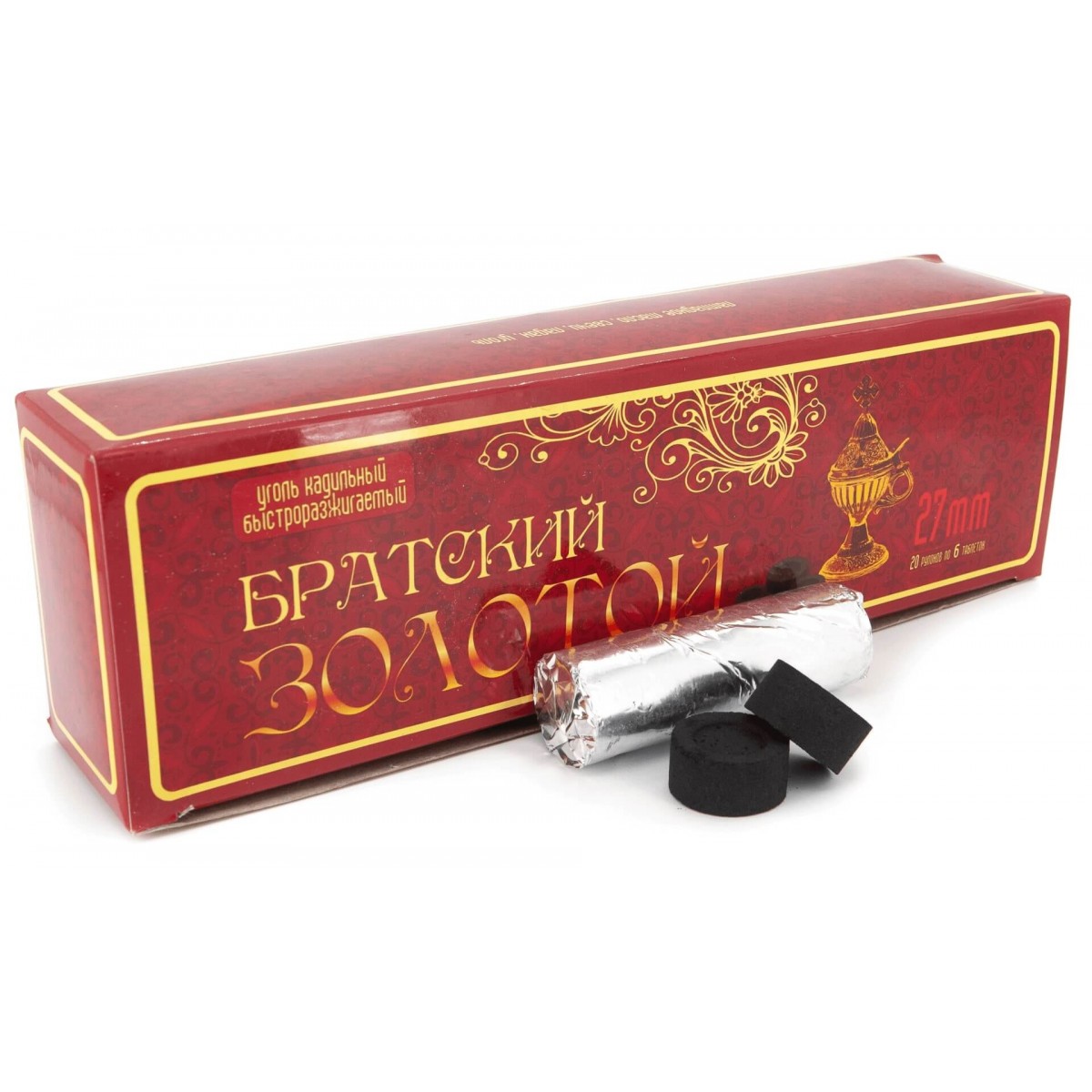 Уголь кадильный быстроразжигаемый «Братский золотой» 27 мм