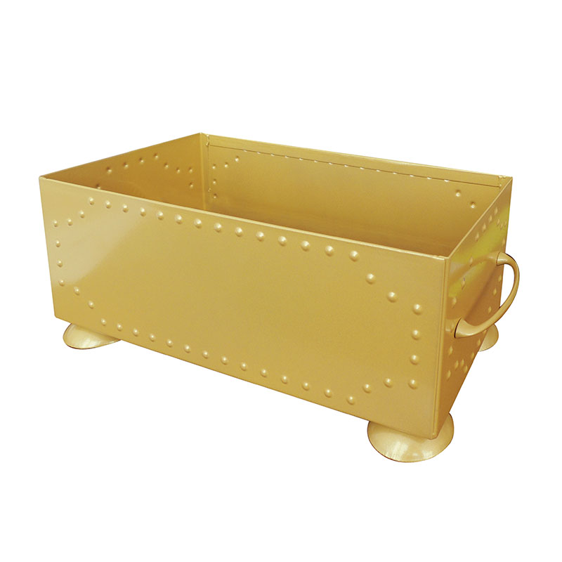 Церковные ящики изготавливаются из стали марки Ст3 (обычный состав стали - сплав железа, углерода и примесей) и окрашиваются порошковым методом под цвет латуни. Сталь обеспечивает прочность изделию, а латунь – легкий цвет позолоты, гармонично вписывающийся в убранство церкви. Ящик имеет достаточно компактные размеры и поэтому отлично помещается под любым подсвечником. Длина изделия - 30 см, ширина - 15 см, высота - 16 см.