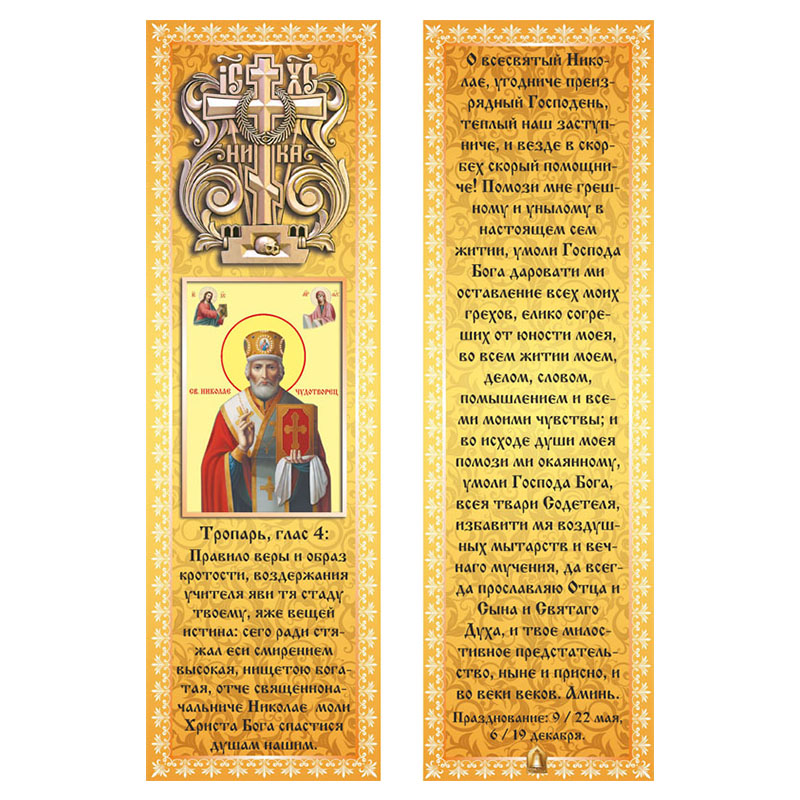 Закладка с молитвой свт. Николай чудотворец (100 шт. в упаковке)