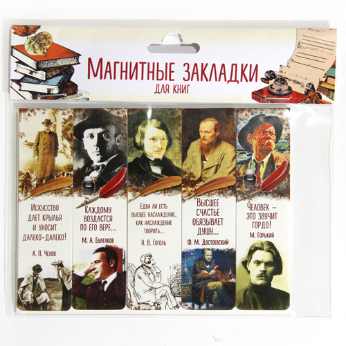 Закладки с магнитом 25 мм "Писатели" (наборы по 5 шт.)/Вариант 2